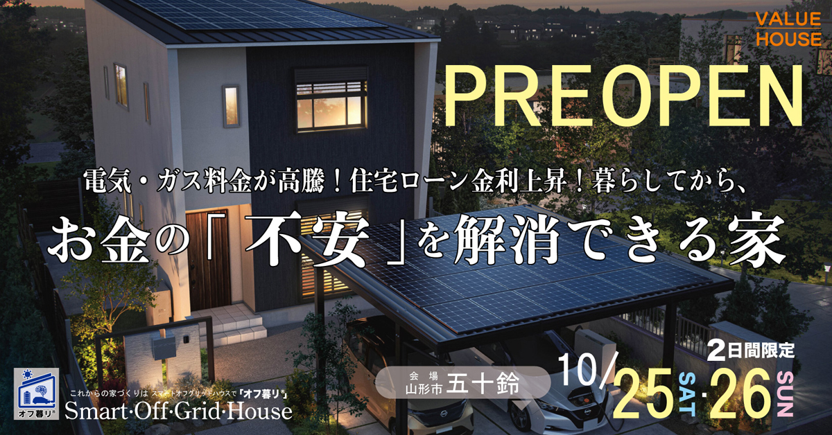〈終了しました〉10/25(土)・26(日)限定 プレオープン 暮らしてからお金の「不安」を解消できる家 Smart・Off・Grid・House 山形
