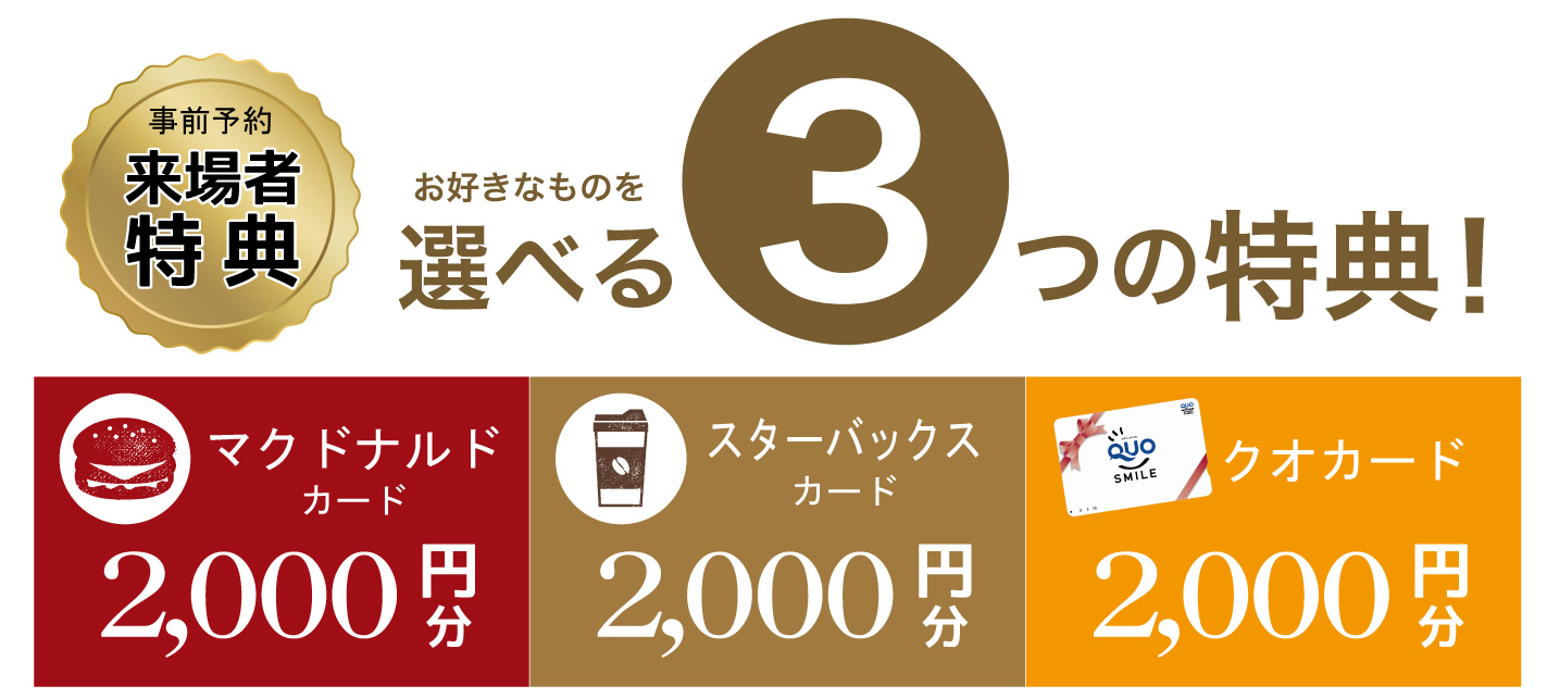 当社HPより初めてイベント予約・見学された御家族様へ3つの中から選べるカード2,000円分プレゼント