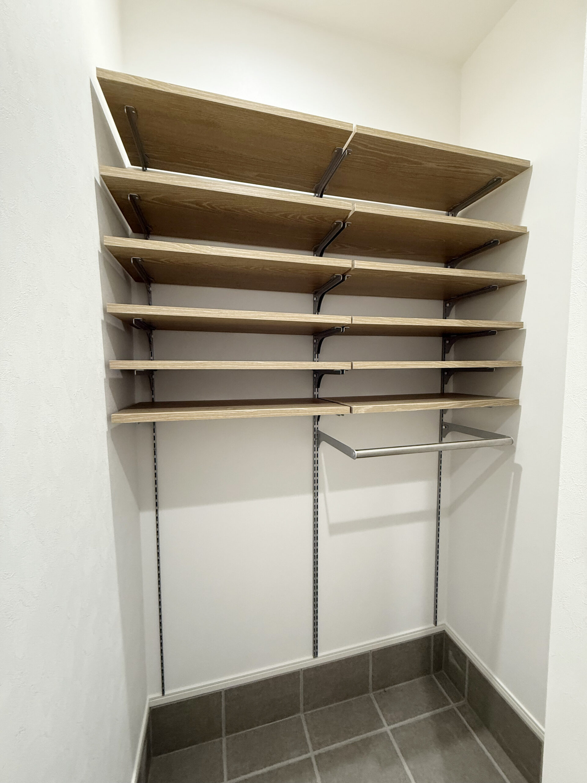 キッチン前カウンター側に収納棚をとりつけました。細かい物の出し入れに大変便利!