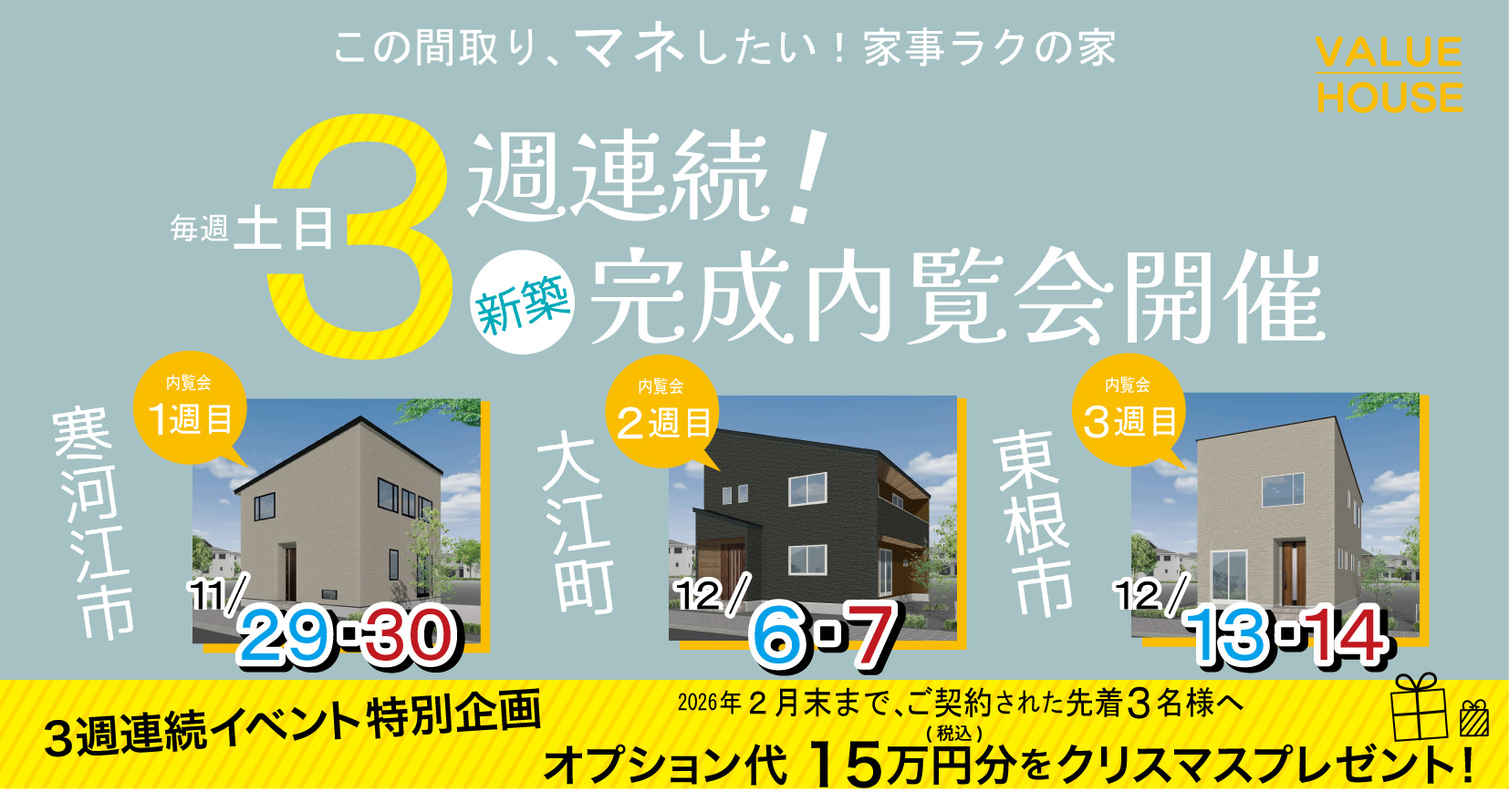 ・3週目-12/13.14限定|東根市郡山会場:3LDK/24坪タイプ【コミコミ1450万円パックプラン】