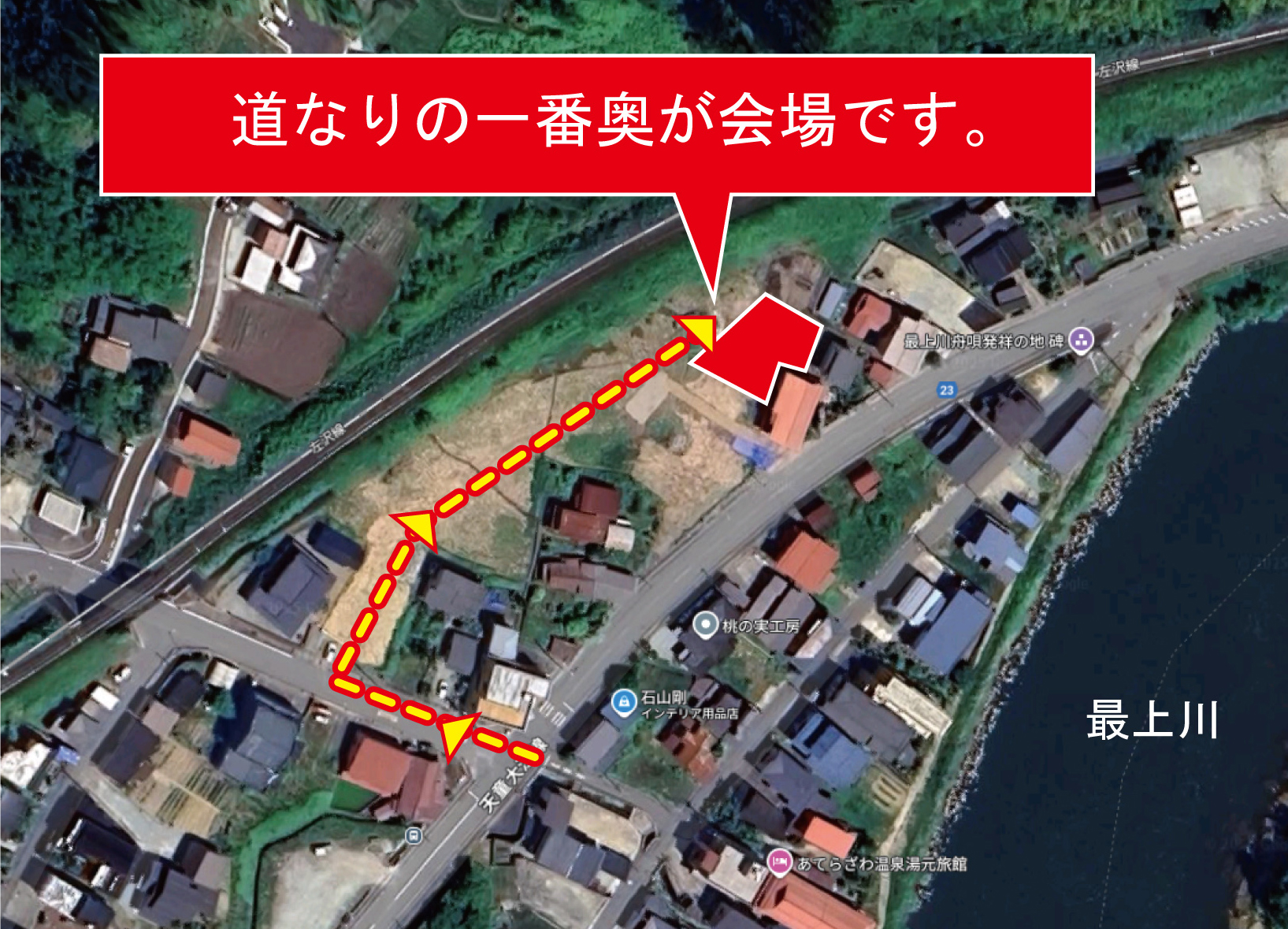 道なりの一番奥が会場です。(記載先住所のナビ案内では、この一番奥までの案内はございません、ご注意下さい。)